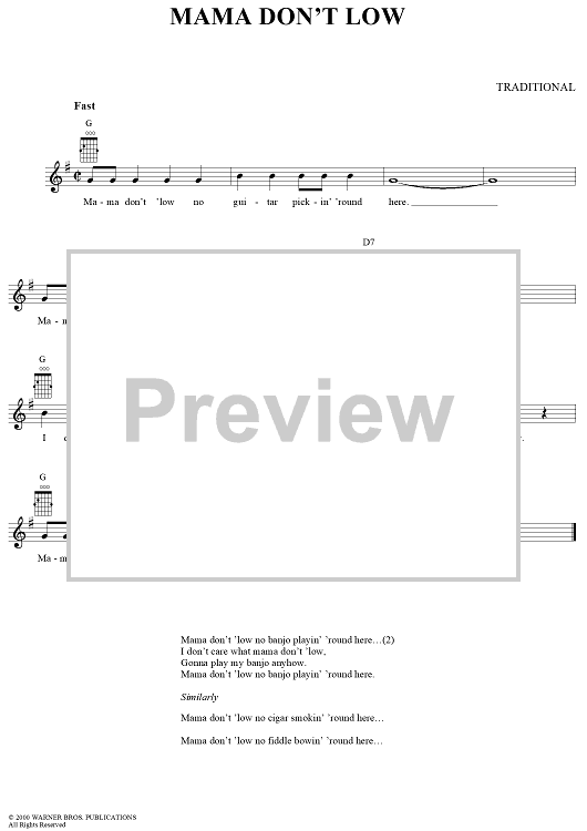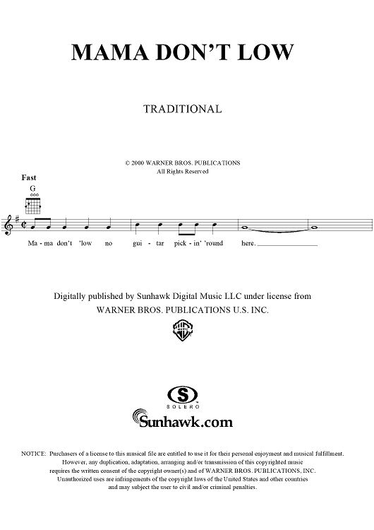 Digital Sheet Music for Mama Don't 'Low by Traditional scored for Lead Sheet; id:292623