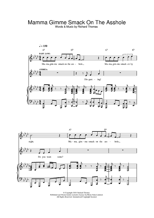 Digital Sheet Music for Mama Gimme Smack On The Asshole by Richard Thomas scored for Piano/Vocal/Chords; id:386853