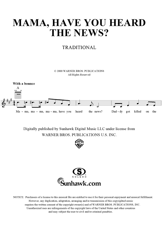 "Mama, Have You Heard the News?" Sheet Music by Traditional