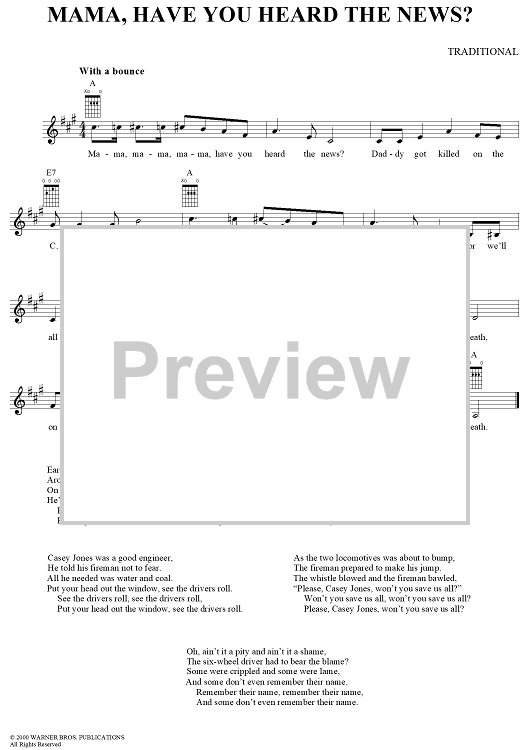 Digital Sheet Music for Mama, Have You Heard the News? by Traditional scored for Lead Sheet; id:292703