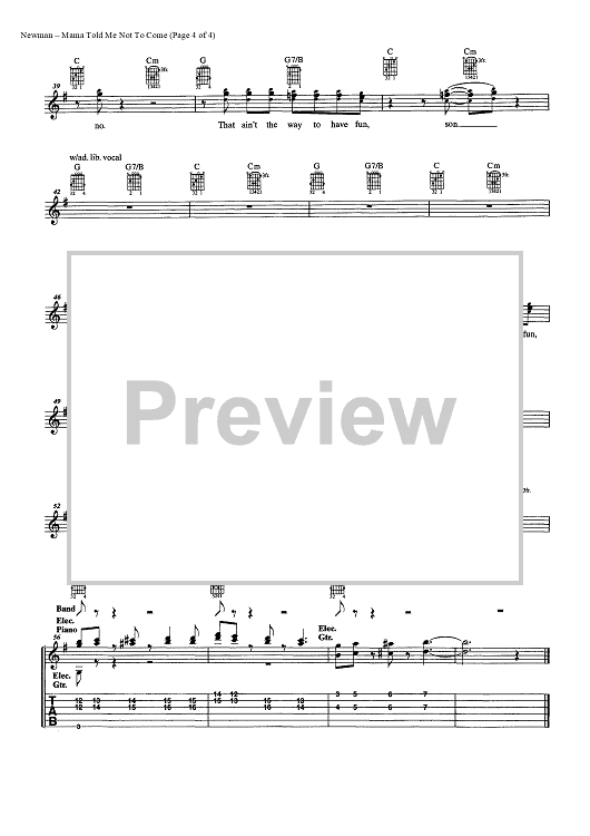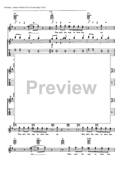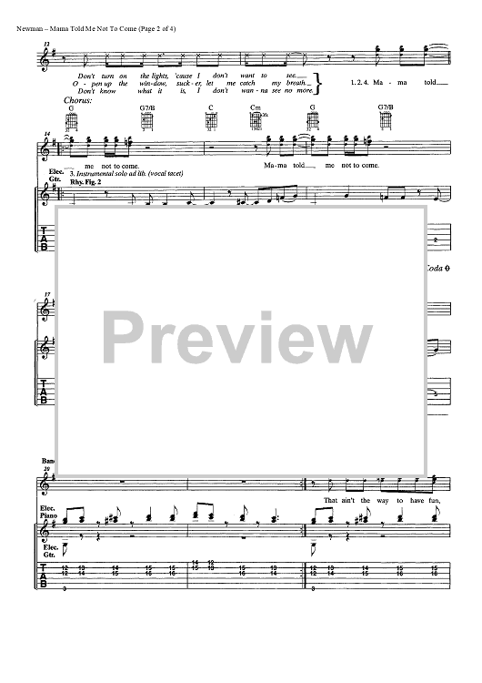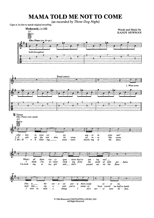 Digital Sheet Music for Mama Told Me Not to Come by Randy Newman, Three Dog Night scored for Easy Guitar Tab/Vocal/Chords; id:449224