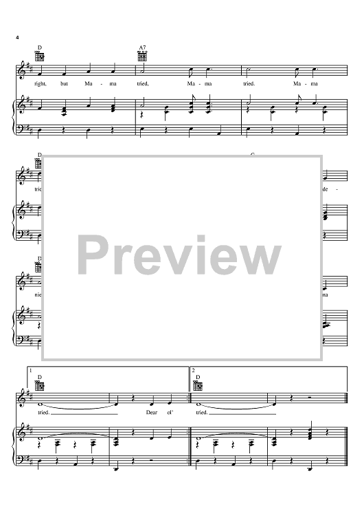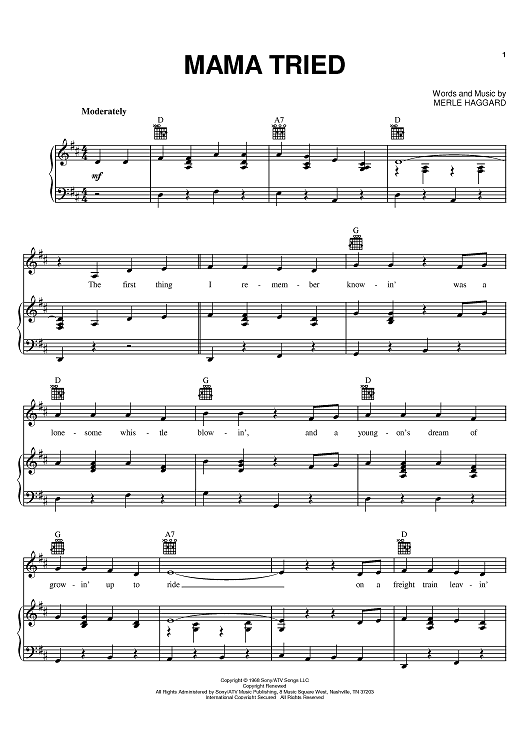 Digital Sheet Music for Mama Tried by Merle Haggard scored for Piano/Vocal/Chords; id:386518