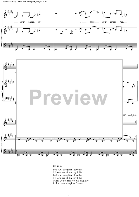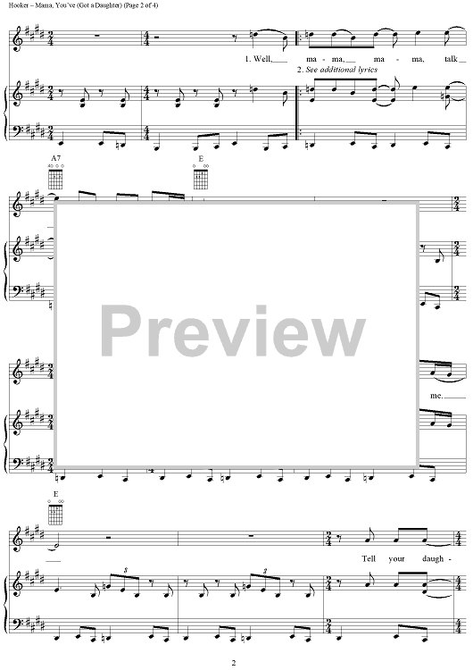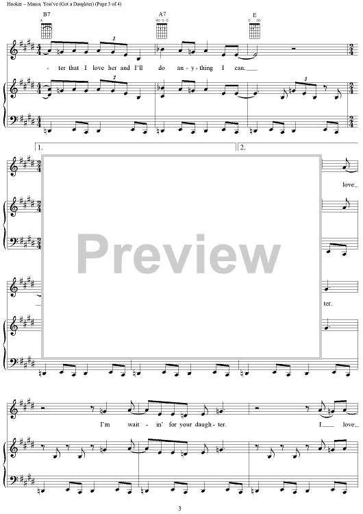 Digital Sheet Music for Mama, You've (Got A Daughter) by John Lee Hooker scored for Piano/Vocal/Chords; id:113378