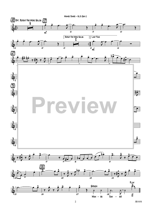 Digital Sheet Music for Mambo Jambo - Alto Sax 1 by Chris Sharp scored for Jazz Ensemble; id:455904