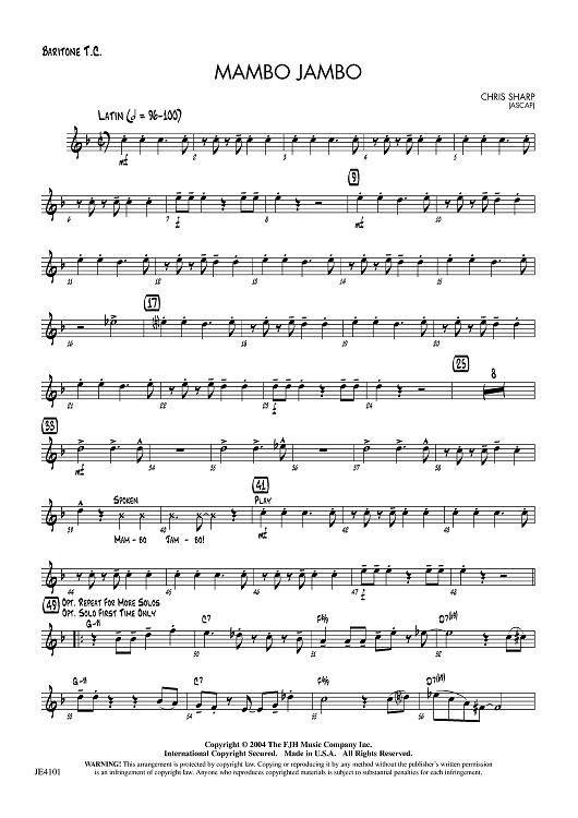 Digital Sheet Music for Mambo Jambo - Baritone TC by Chris Sharp scored for Jazz Ensemble; id:455925