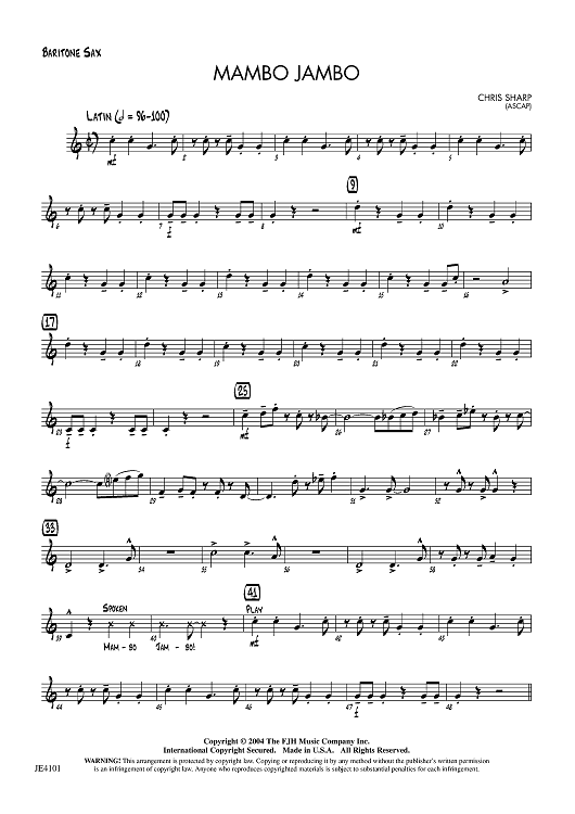 Digital Sheet Music for Mambo Jambo - Opt. Baritone Sax by Chris Sharp scored for Jazz Ensemble; id:455908