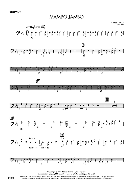 Digital Sheet Music for Mambo Jambo - Opt. Trombone 3 by Chris Sharp scored for Jazz Ensemble; id:455915