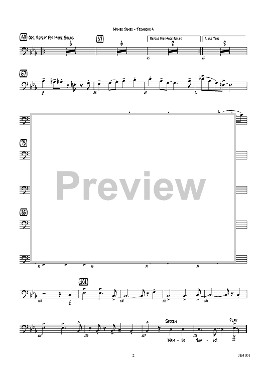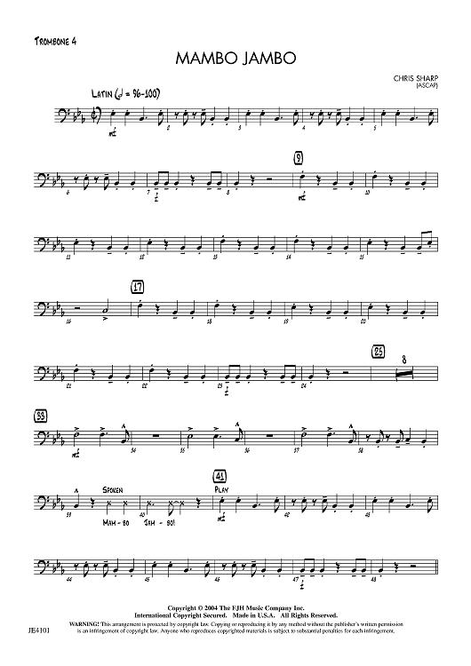 Digital Sheet Music for Mambo Jambo - Opt. Trombone 4 by Chris Sharp scored for Jazz Ensemble; id:455916