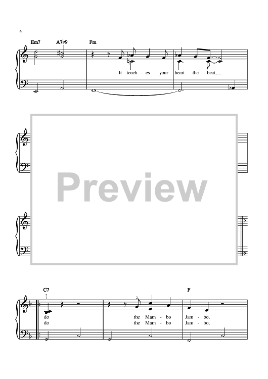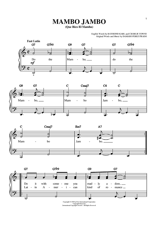 Digital Sheet Music for Mambo Jambo (Que Rico El Mambo) by Perez Prado, Dave Barbour, Raymond Karl, Charlie Towne scored for Easy Piano; id:367676