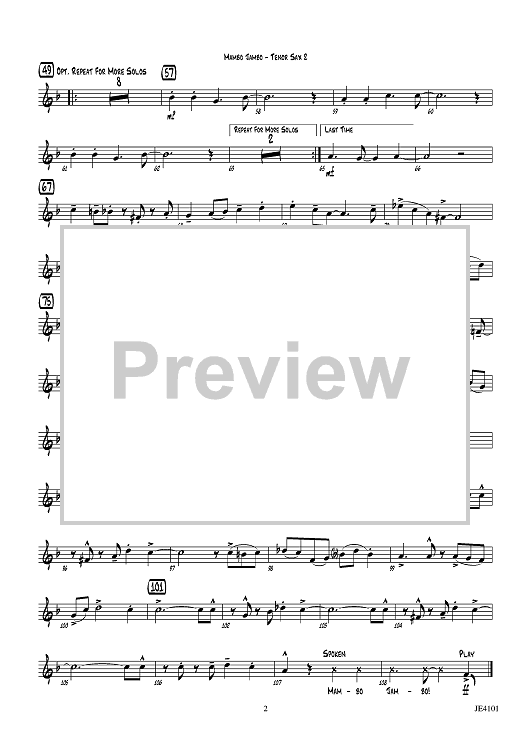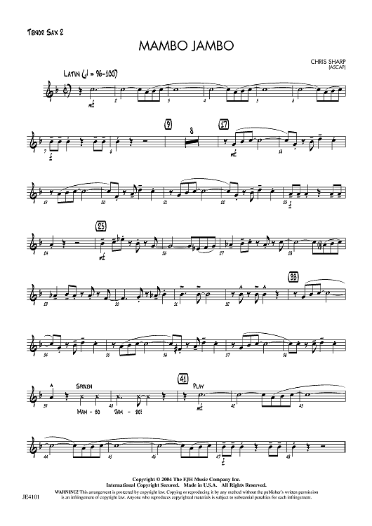 Digital Sheet Music for Mambo Jambo - Tenor Sax 2 by Chris Sharp scored for Jazz Ensemble; id:455907