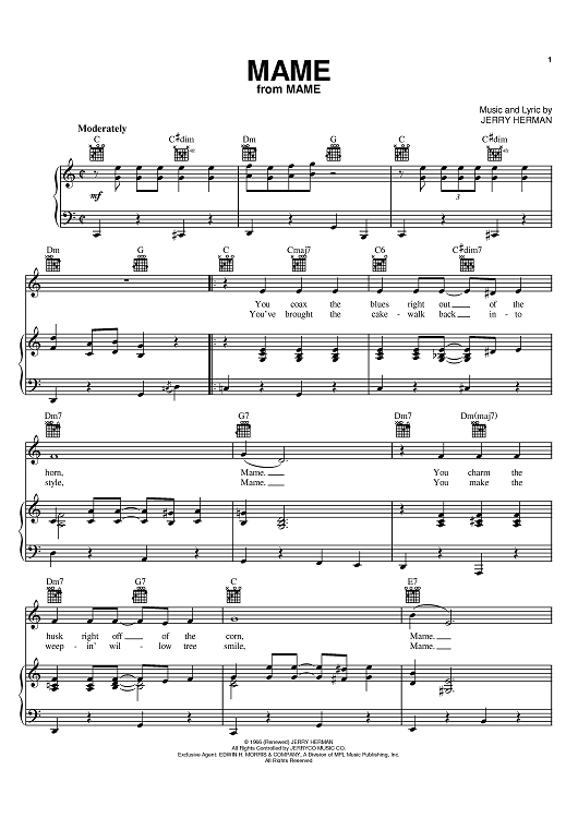 Digital Sheet Music for Mame by Jerry Herman scored for Piano/Vocal/Chords; id:396042