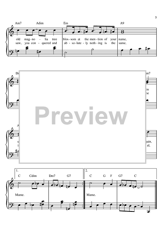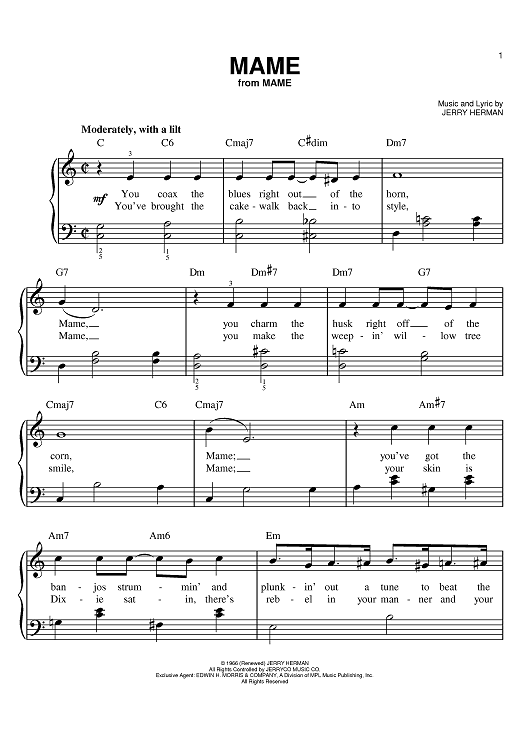 Digital Sheet Music for Mame by Jerry Herman scored for Easy Piano; id:398105