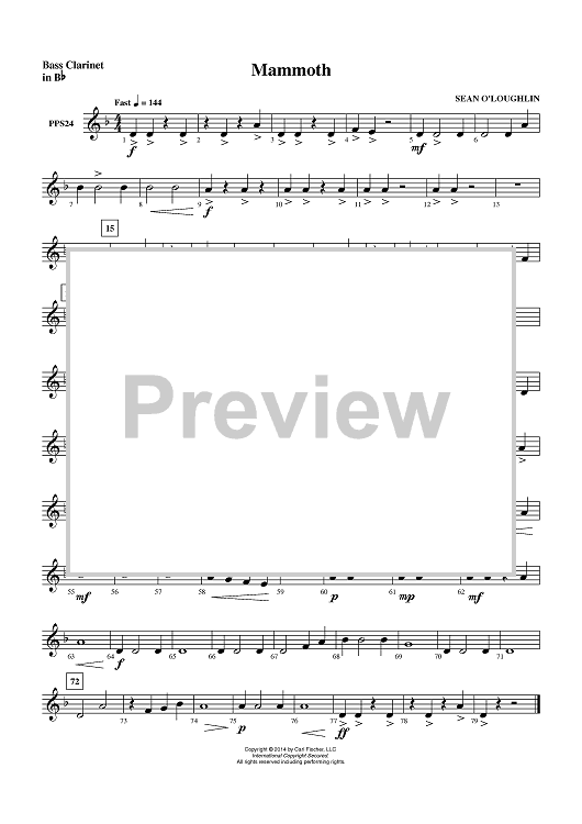 Digital Sheet Music for Mammoth - Bass Clarinet in Bb by Sean O'Loughlin scored for Concert Band; id:452463