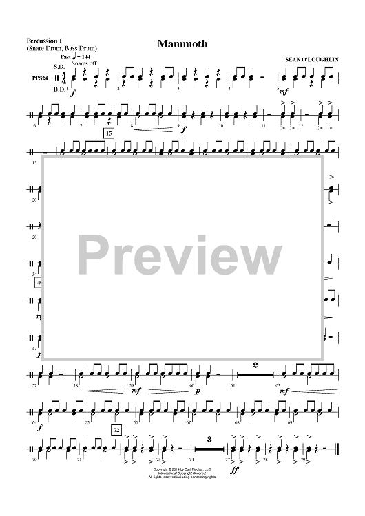 "Mammoth - Percussion 1" Sheet Music by Sean O'Loughlin