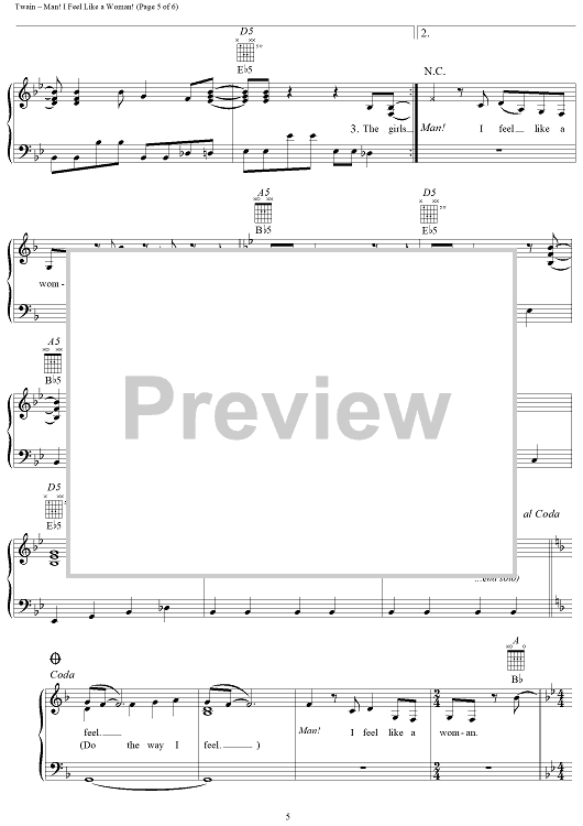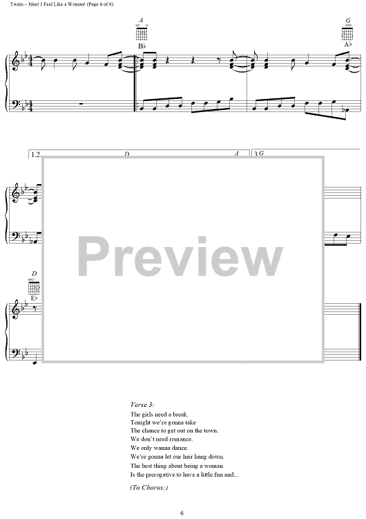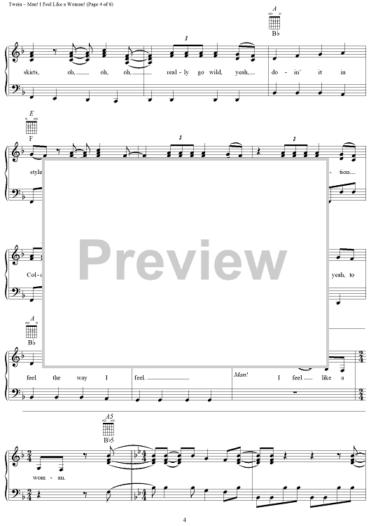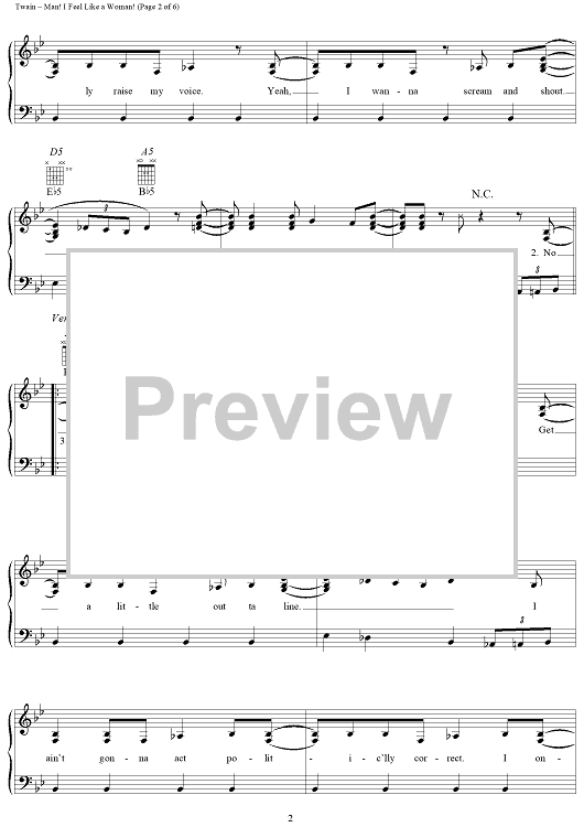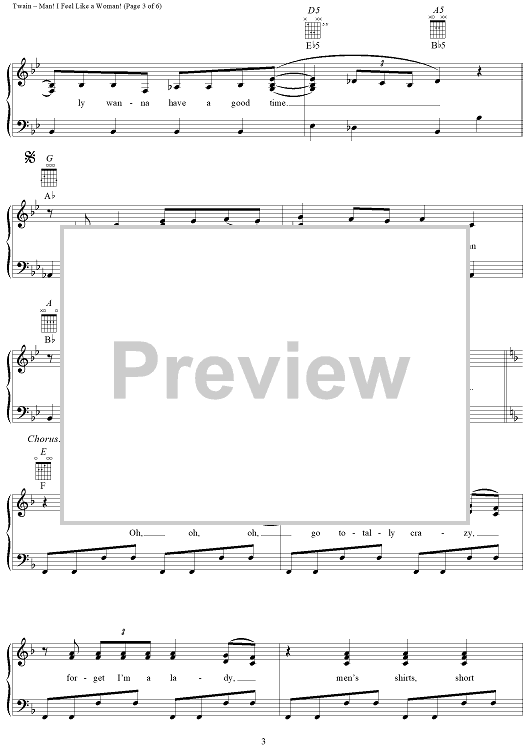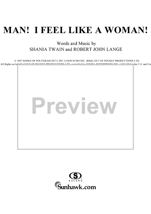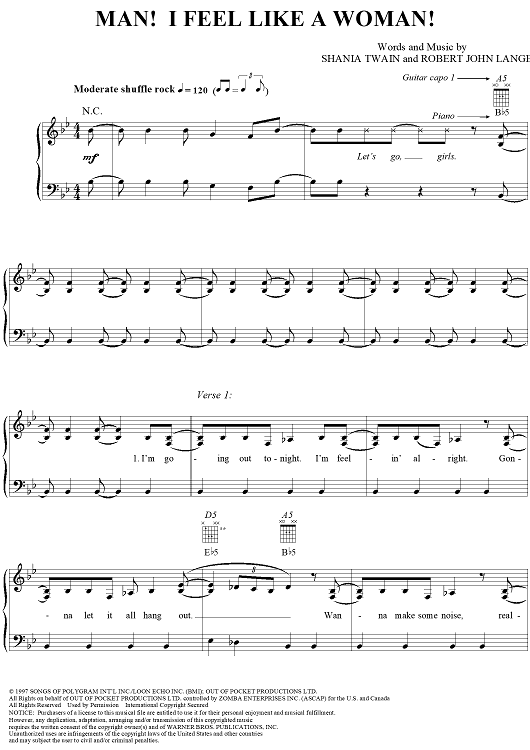 Digital Sheet Music for Man! I Feel Like A Woman! by Shania Twain, Robert Lange scored for Piano/Vocal/Chords; id:112648