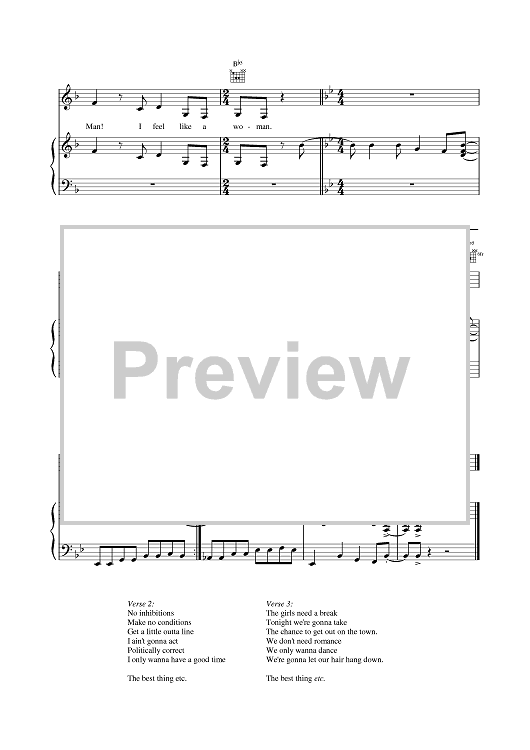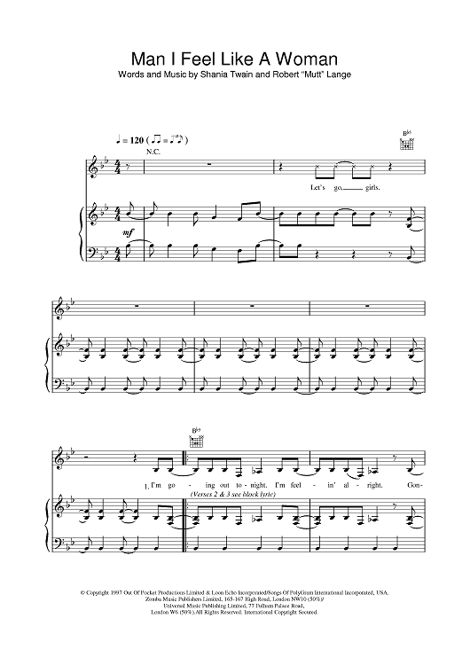 Digital Sheet Music for Man I Feel Like A Woman by Shania Twain, Robert Lange scored for Piano/Vocal/Chords; id:379911