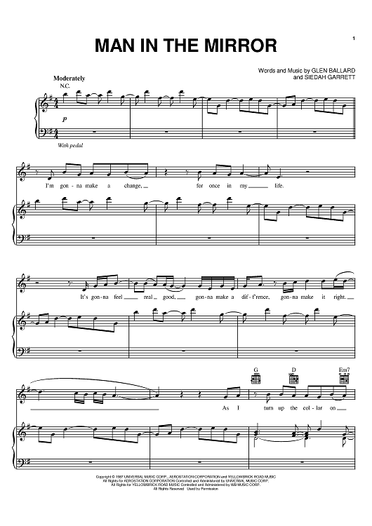 Digital Sheet Music for Man In The Mirror by Michael Jackson, Glen Ballard, Siedah Garrett scored for Piano/Vocal/Chords; id:380648