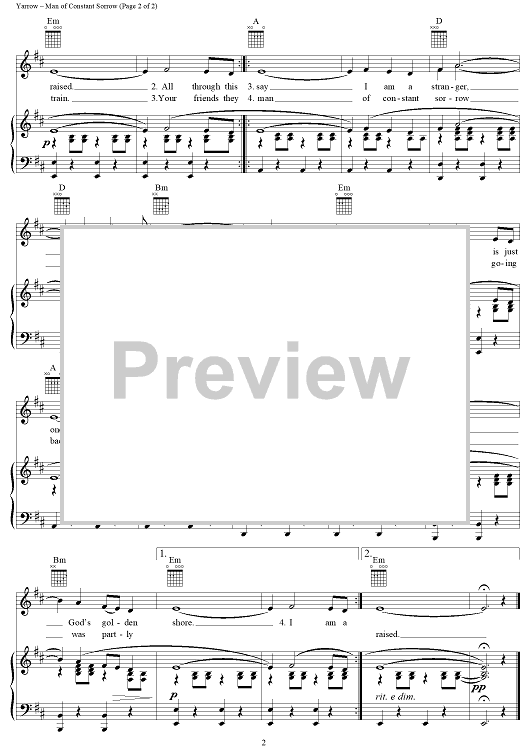 Digital Sheet Music for Man of Constant Sorrow by Paul Stookey, Peter Yarrow, Peter, Paul and Mary scored for Piano/Vocal/Chords; id:263171