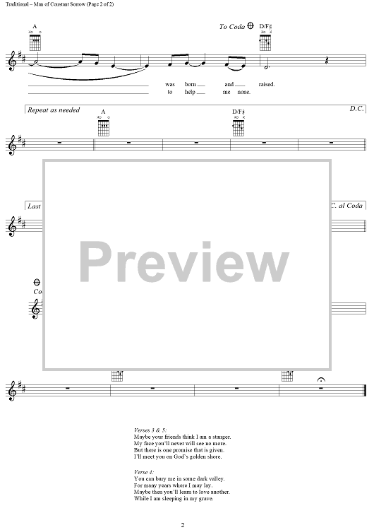 "Man of Constant Sorrow" Sheet Music by Jerry Garcia