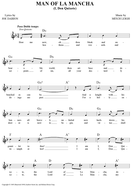 "Man of La Mancha (I, Don Quixote)" Sheet Music by Mitch Leigh