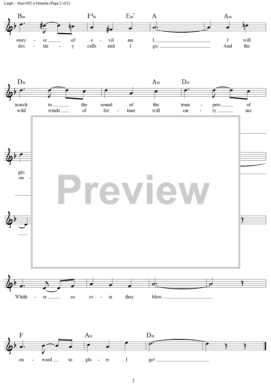 Digital Sheet Music for Man of La Mancha (I, Don Quixote) by Mitch Leigh, Joe Darion scored for Lead Sheet; id:449088