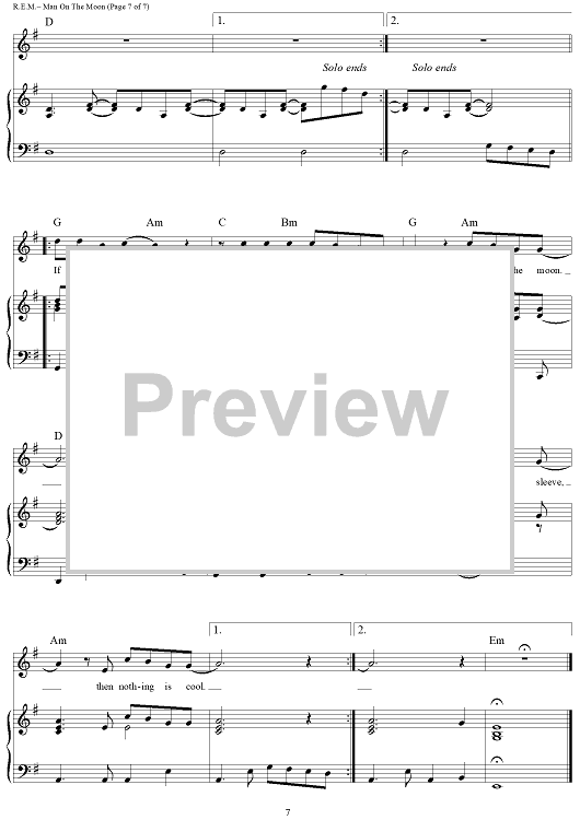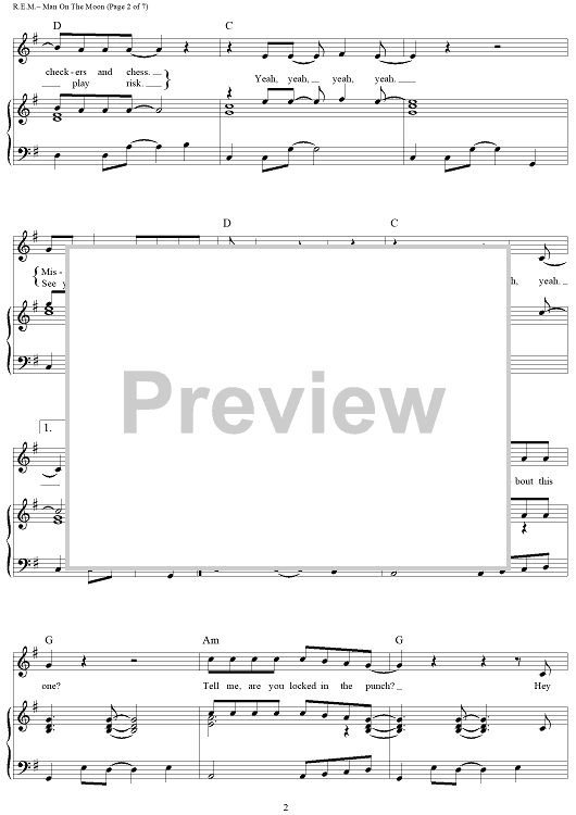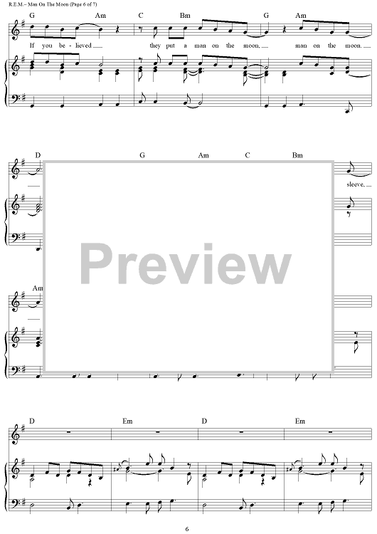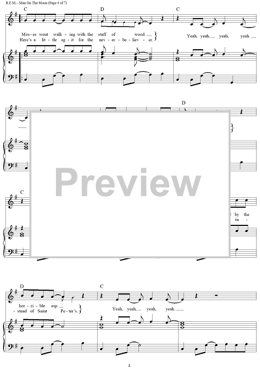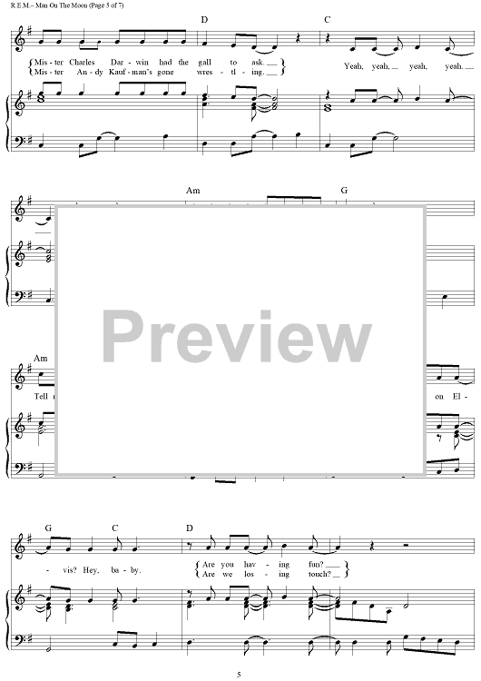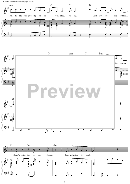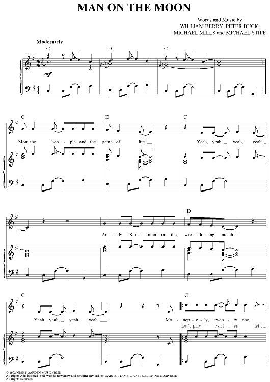 Digital Sheet Music for Man On The Moon by R.E.M., William Berry, Michael Stipe, Peter Buck, Mike Mills scored for Piano/Vocal/Chords; id:433112