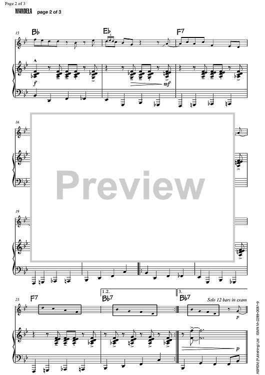 Digital Sheet Music for Mandela by , Chris Batchelor, Abdullah Ibrahim scored for Clarinet 5/Trumpet 5/Piano; id:355517