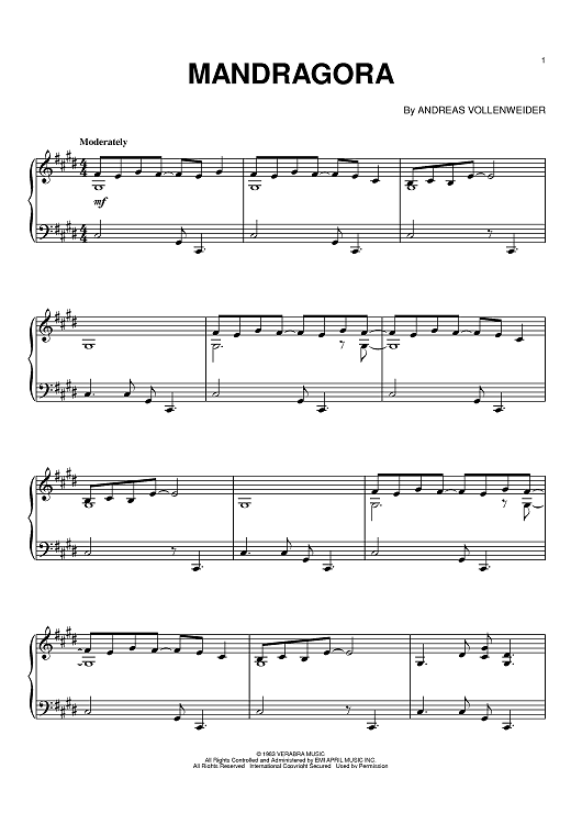 Digital Sheet Music for Mandragora by Andreas Vollenweider scored for Piano; id:382288