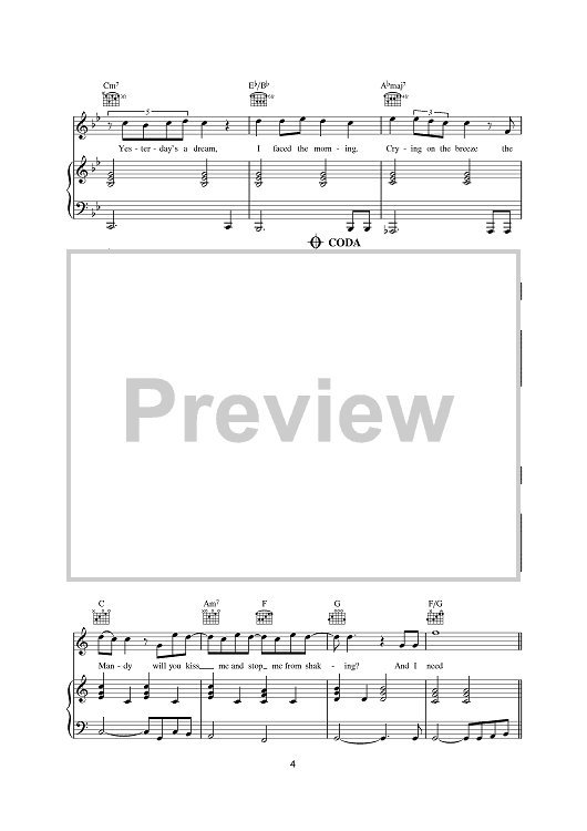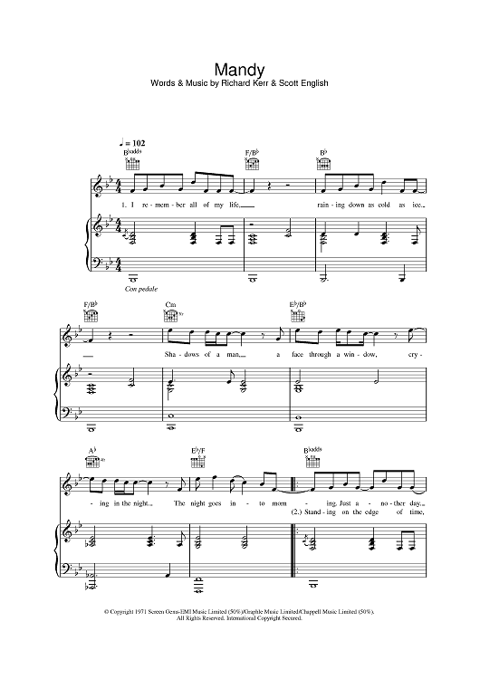 Digital Sheet Music for Mandy by Richard Kerr, Westlife, Scott English scored for Piano/Vocal/Chords; id:376067