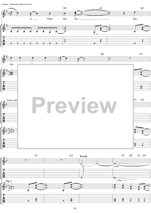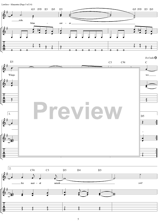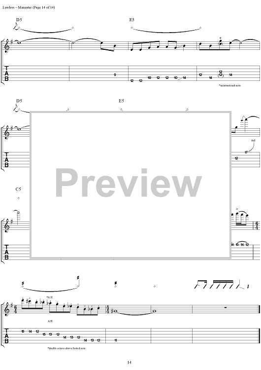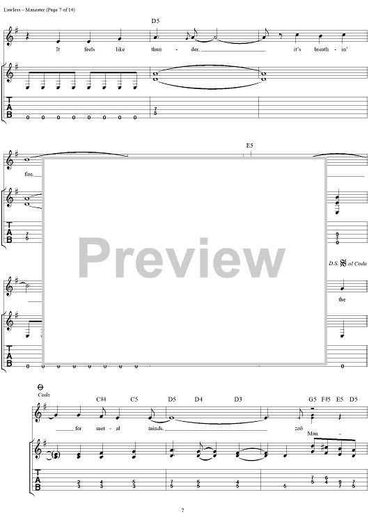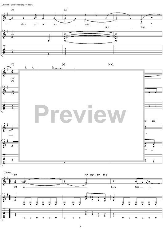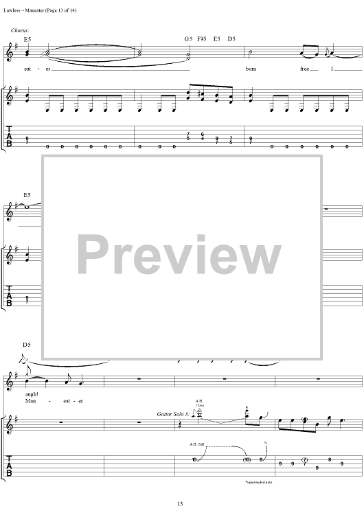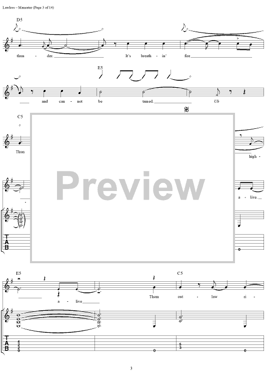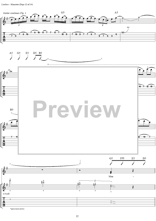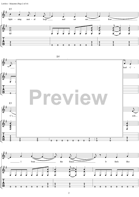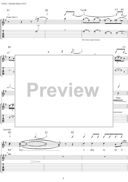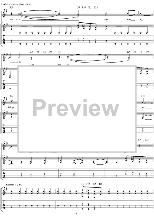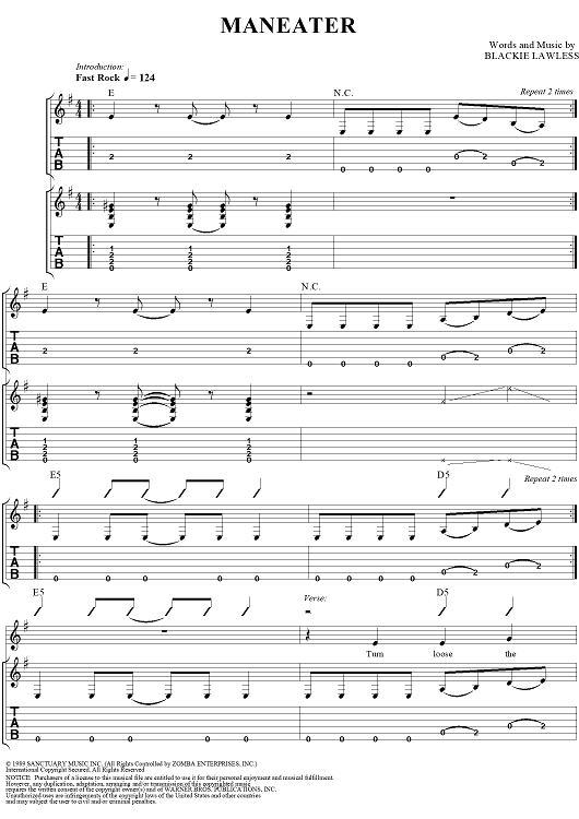 Digital Sheet Music for Maneater by Blackie Lawless, W.A.S.P. scored for Guitar Tab/Vocal; id:250382