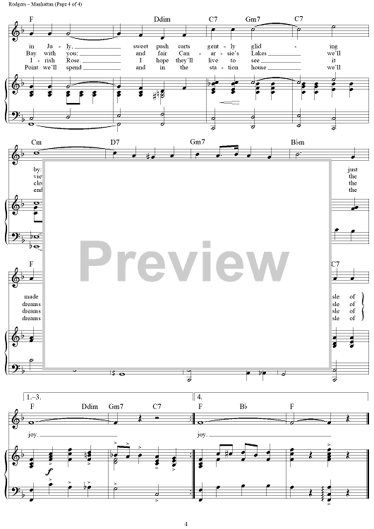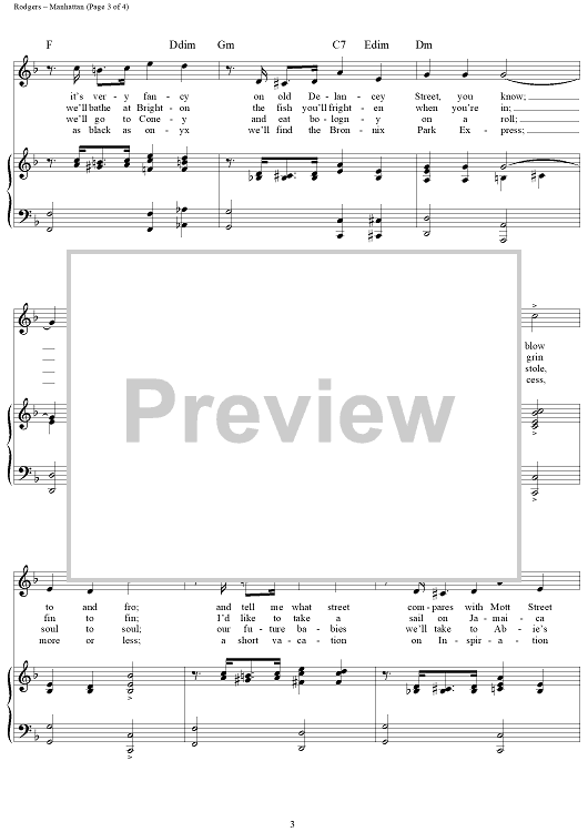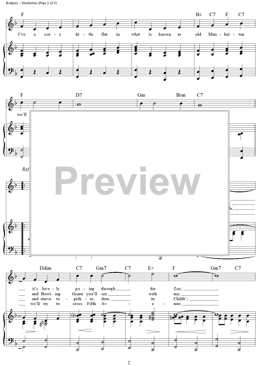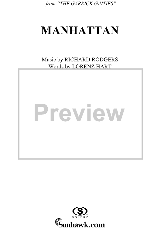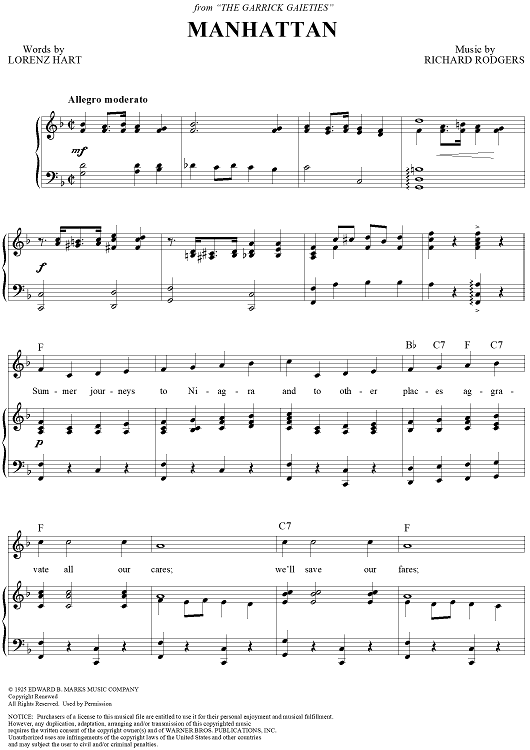 Digital Sheet Music for Manhattan by Richard Rodgers, Lorenz Hart, Ben Selvin scored for Piano/Vocal/Chords; id:170146