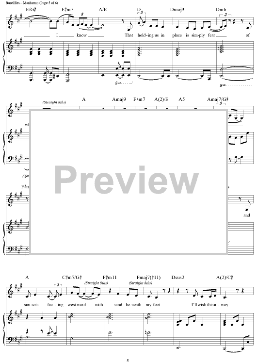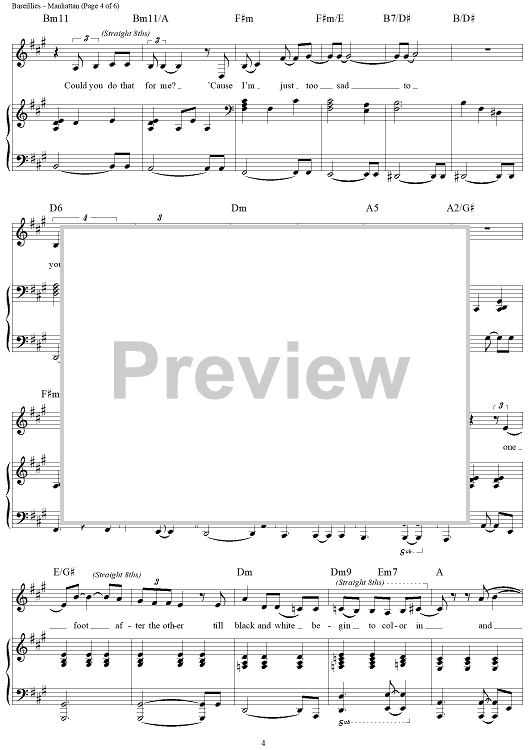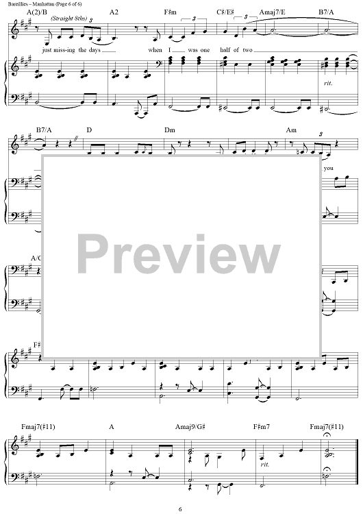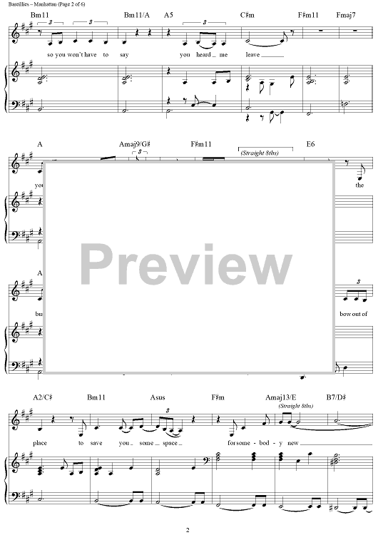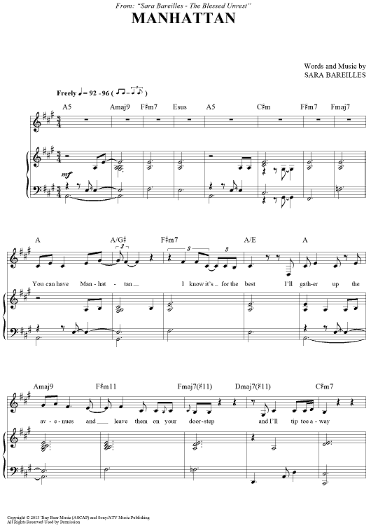 Digital Sheet Music for Manhattan by Sara Bareilles scored for Piano/Vocal/Chords; id:437404