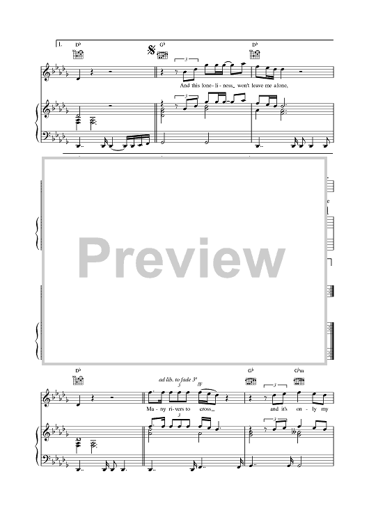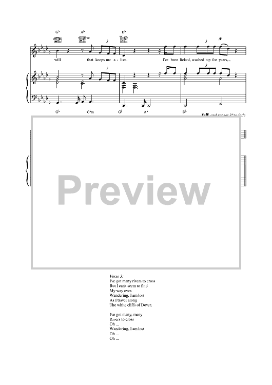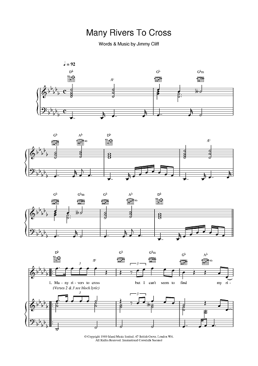 Digital Sheet Music for Many Rivers To Cross by Jimmy Cliff, UB40 scored for Piano/Vocal/Chords; id:379766