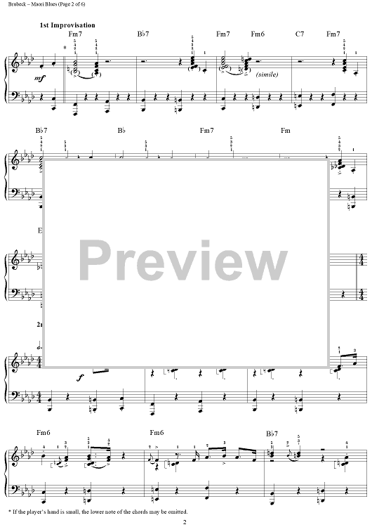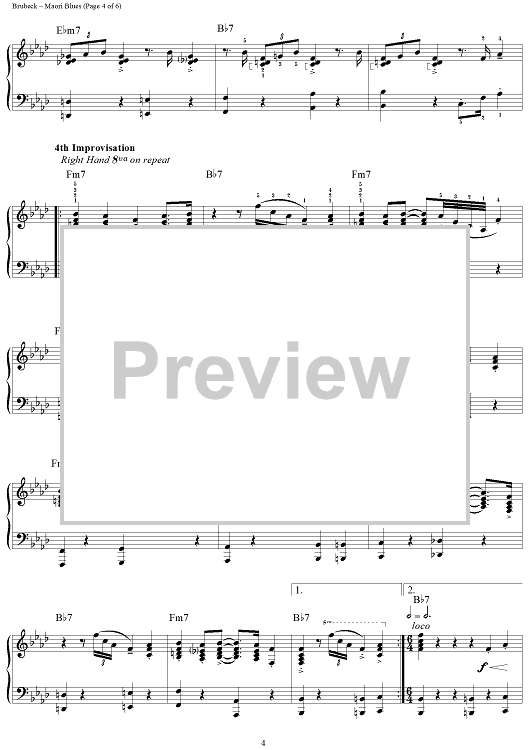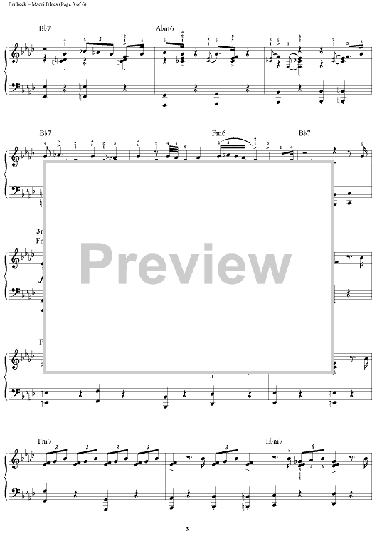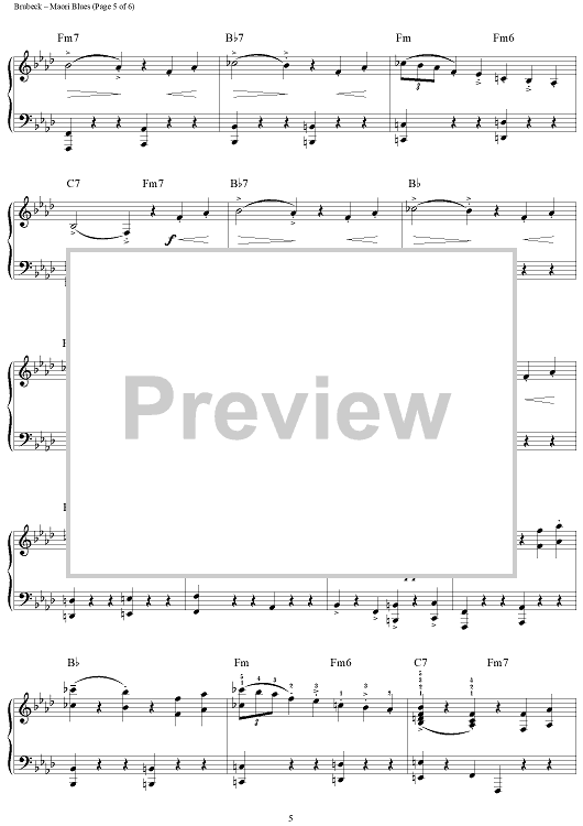 Digital Sheet Music for Maori Blues by Dave Brubeck scored for Piano Solo; id:275899