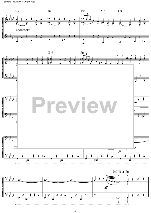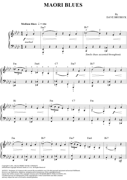 "Maori Blues" Sheet Music by Dave Brubeck