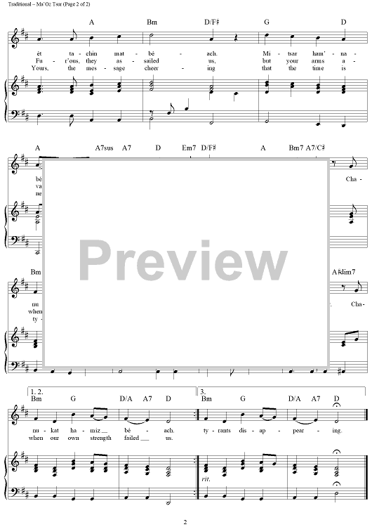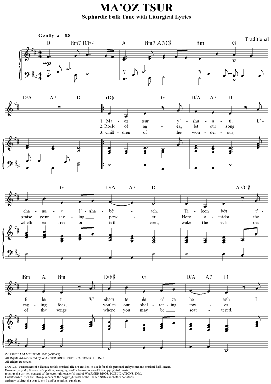 Digital Sheet Music for Ma'oz Tsur by Traditional scored for Piano/Vocal/Chords; id:261409