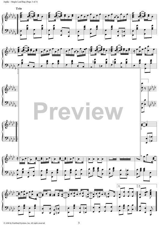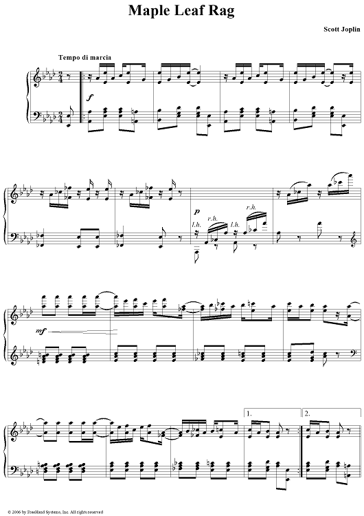 Digital Sheet Music for Maple Leaf Rag by Scott Joplin scored for Piano Solo; id:249699