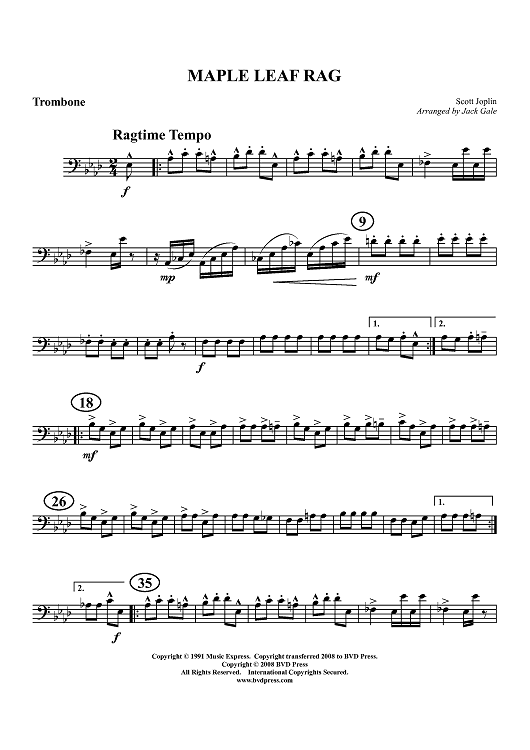"Maple Leaf Rag - Trombone" Sheet Music by Scott Joplin