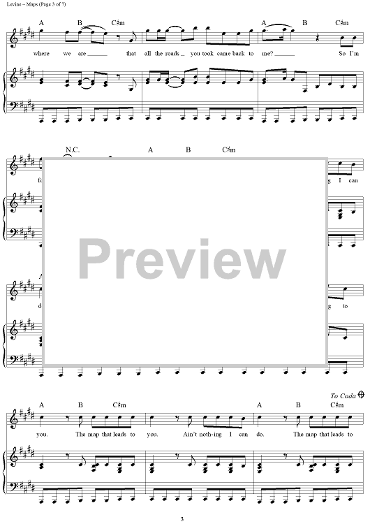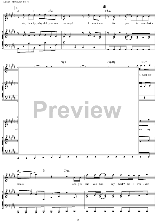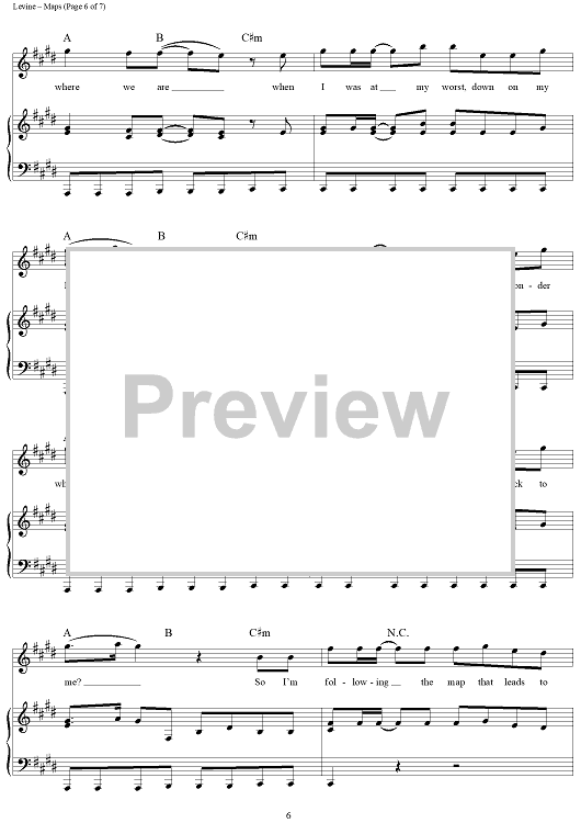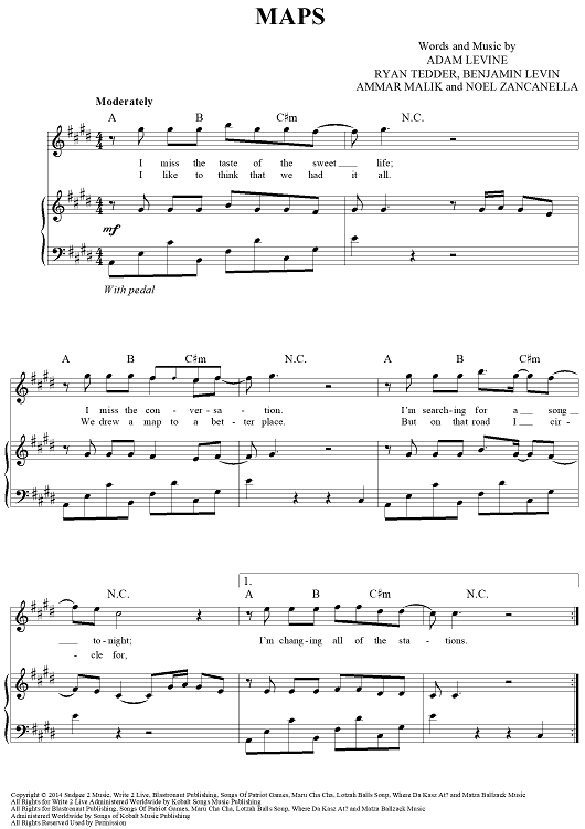 Digital Sheet Music for Maps by Adam Levine, Maroon 5, Ryan Tedder, Benjamin Levin, Noel Zancanella, Ammar Malik scored for Piano/Vocal/Chords; id:442885