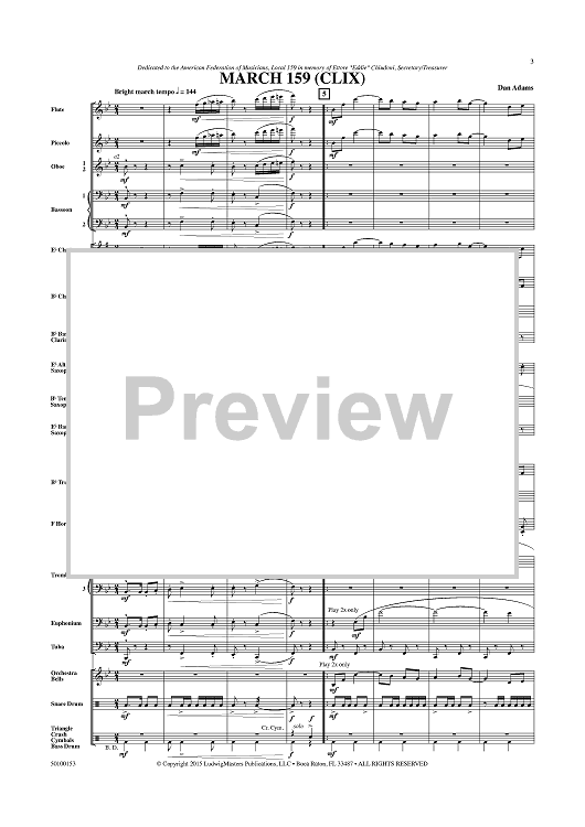 Digital Sheet Music for March 159 (CLIX) - Score by Dan Adams scored for Concert Band; id:459651