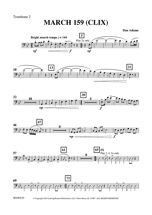 "March 159 (CLIX) - Trombone 2" Sheet Music by Dan Adams