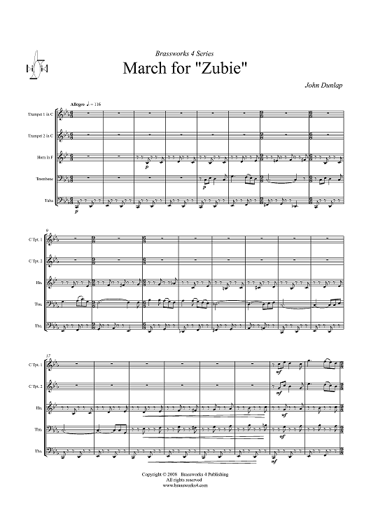 Digital Sheet Music for March for "Zubie" - Score by John Dunlap scored for Brass Quintet; id:410643