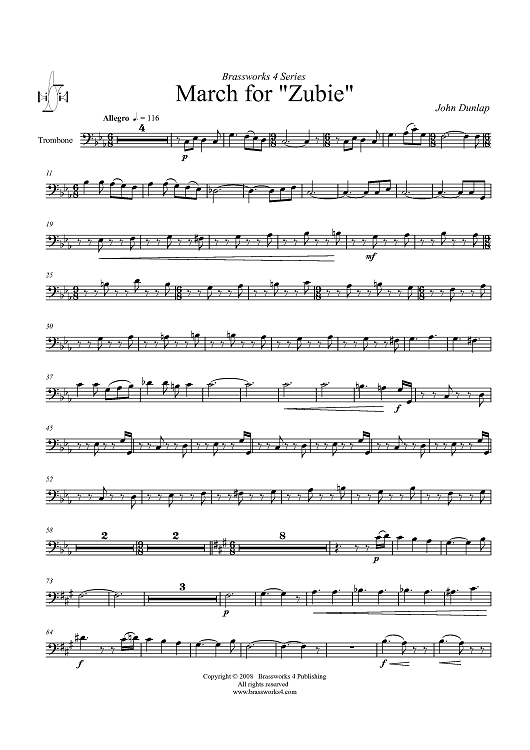 "March for "Zubie" - Trombone" Sheet Music by John Dunlap