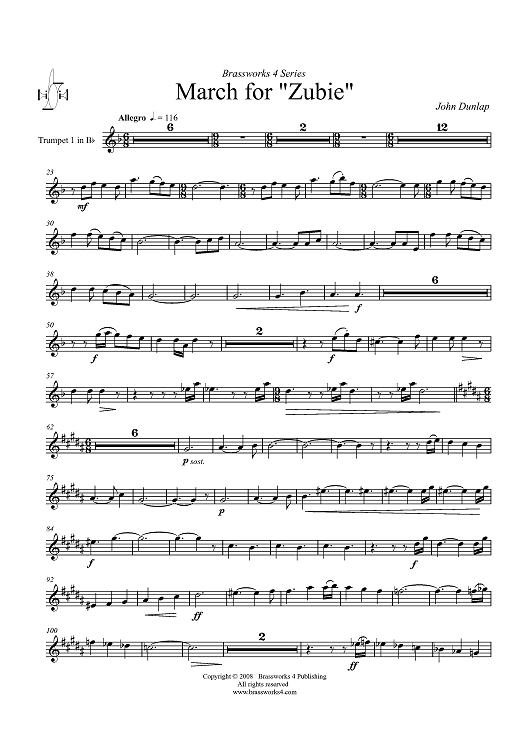 Digital Sheet Music for March for "Zubie" - Trumpet 1 in B-flat by John Dunlap scored for Brass Quintet; id:410649