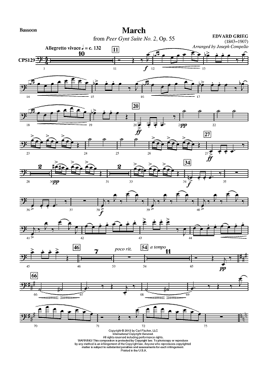 Digital Sheet Music for March (from Peer Gynt Suite No. 2) - Bassoon by Edvard Grieg, Joseph Compello scored for Concert Band; id:430668
