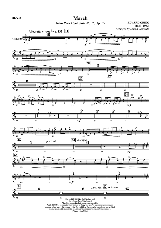 Digital Sheet Music for March (from Peer Gynt Suite No. 2) - Oboe 2 by Edvard Grieg, Joseph Compello scored for Concert Band; id:430663