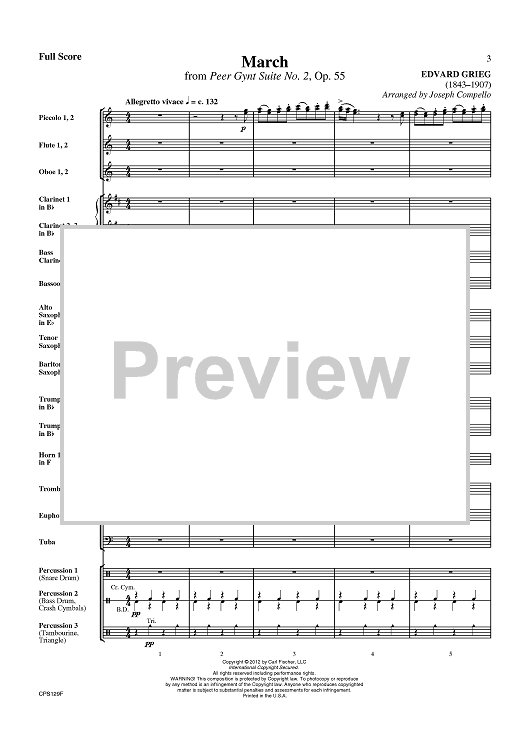 Digital Sheet Music for March (from Peer Gynt Suite No. 2) - Score by Edvard Grieg, Joseph Compello scored for Concert Band; id:430657