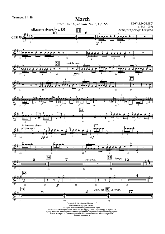 Digital Sheet Music for March (from Peer Gynt Suite No. 2) - Trumpet 1 in Bb by Edvard Grieg, Joseph Compello scored for Concert Band; id:430673