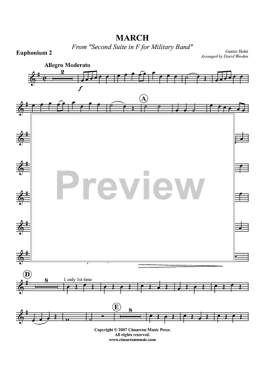 "March from "Second Suite in F for Military Band" - Euphonium 2 BC/TC" Sheet Music by Gustav Holst