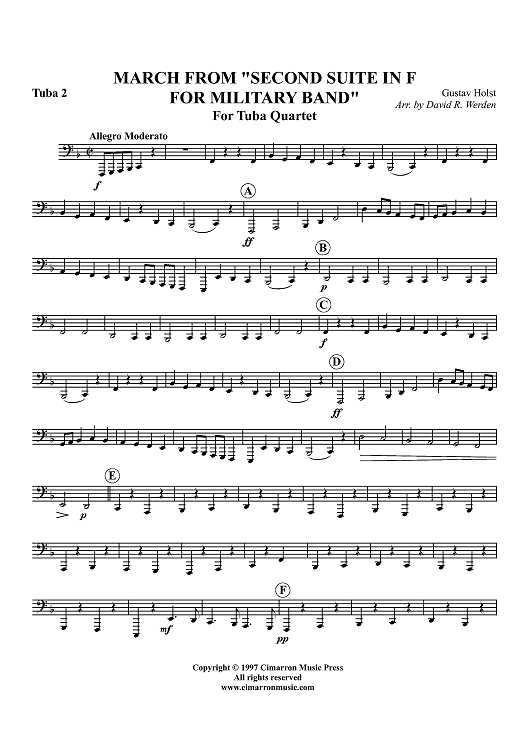 Digital Sheet Music for March from "Second Suite in F for Military Band" - Tuba 2 by David Werden, Gustav Holst scored for Tuba Quartet; id:316015